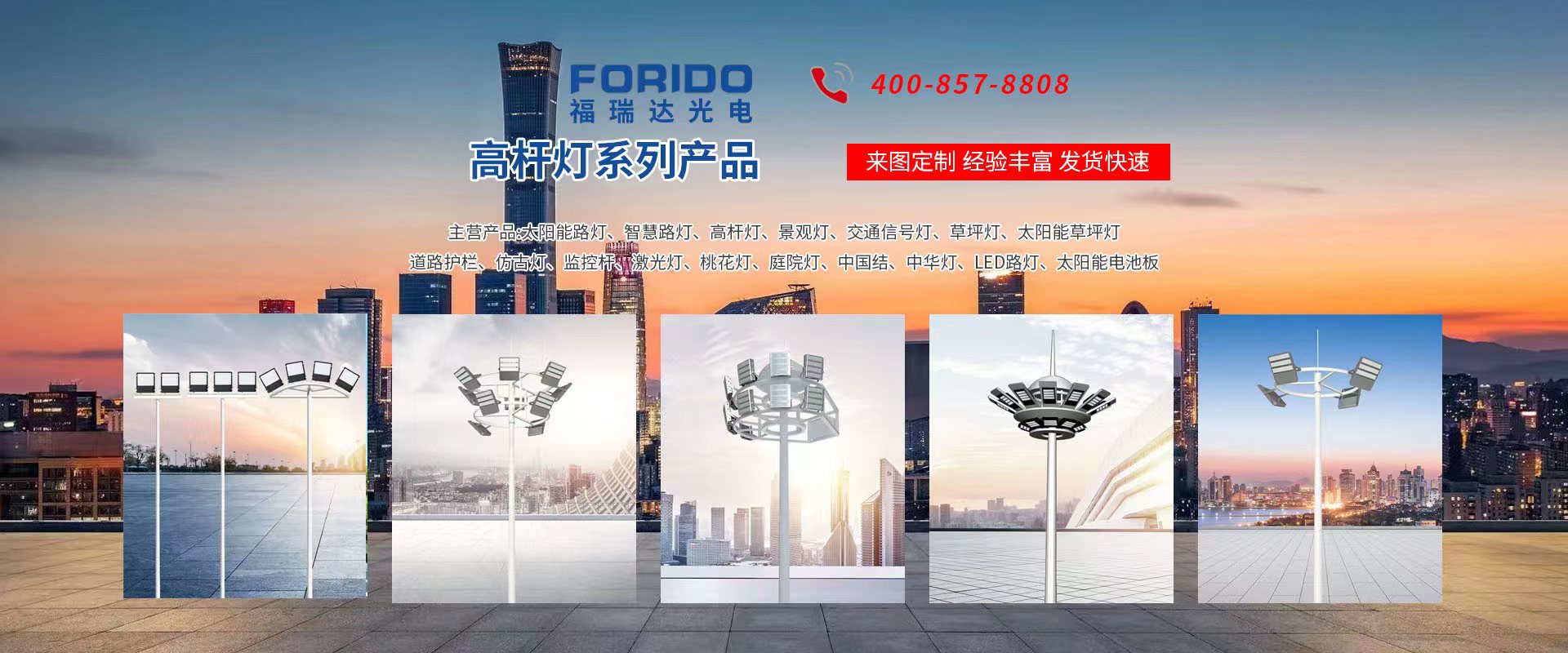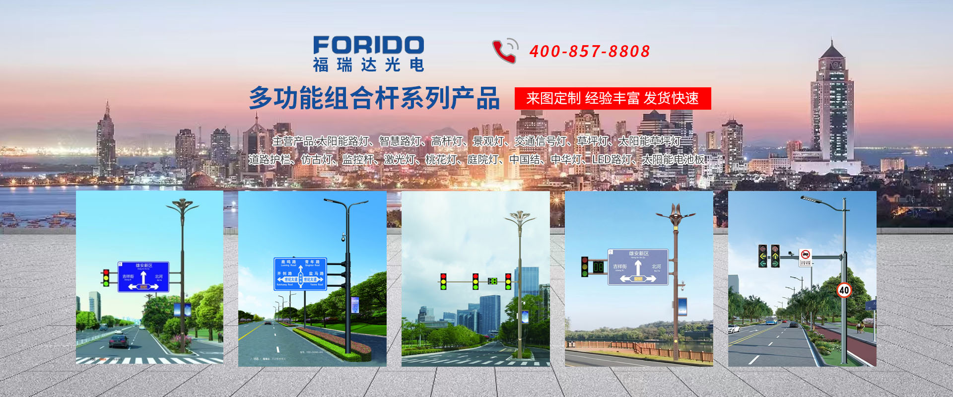揚州福瑞達光電科技有限公司位于淮左名都歷史文化名城、中國路燈制造基地揚州市北郊菱塘工業(yè)園,公司占地面積76000平方米,注冊資金10518萬元,擁有高級技術(shù)嫻熟的員工280多人,擁有大型折彎機、激光切割、數(shù)控注塑機、壓鑄機、自動埋弧焊、氣焊、彩色粉末靜電噴塑等大型自動化設(shè)備,我公司是一家集設(shè)計、研發(fā)、生產(chǎn)、銷售、施工安裝服務(wù)為一體的戶外交通照明產(chǎn)品制造商,主要生產(chǎn)智慧路燈、太陽能路燈、LED路燈、高桿燈、景觀燈、交通信號燈、交通標(biāo)志牌、通信鐵塔、路跨鋼結(jié)構(gòu)、公交站臺、太陽能光伏組件、景點亮化、樓宇亮化工程的設(shè)計施工等。公司秉承開拓創(chuàng)新、銳意進取、精誠服務(wù)的企業(yè)精神,堅持以“誠信為本、技術(shù)為先、服務(wù)是金”的合作理念,我們憑借先進的制造工藝、優(yōu)質(zhì)的產(chǎn)品質(zhì)量、合理的市場價格和完善的售后服務(wù)贏得了廣闊的市場和客戶的信賴。  我公司已通過ISO9001質(zhì)量體系認證、ISO14001環(huán)境管理體認證,CQC產(chǎn)品認證,中國節(jié)能產(chǎn)品認證,通過“CCC”強制性產(chǎn)品認證,具有市政總承包,照明,交安,設(shè)計等資質(zhì)···